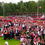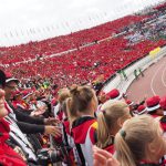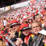Nach einer langen Wartezeit ging es nun endlich zum Olympiastadion. Wieder warten. Diesmal neben Portugal, später neben Brasilien und danach der Schweiz. Spontane Gesänge und Selfies verkürzten die Wartezeit und wir wollten auch nicht mehr warten. Wir wollten endlich hinter der Deutschlandfahne ins Stadion einmarschieren. Es war so weit – Deutschland marschierte ein, wie bei Olympischen Spielen. Und die Pinguine vollzählig mittendrin. Ein halbe Runde herum und dann ab auf die Tribüne, zusammen mit weiteren 2000 deutschen Teilnehmern. Aber den Rekord hält das Team aus der Schweiz mit 3.800 aktiven Teilnehmern. Zum Schluss lief der Gastgeber Finnland unter lautem Applaus aller Nationen ein. Wir erlebten nun eine farbenfrohe Eröffnungsveranstaltung, machten die Laola, tanzten den Flashmob und tauschten erste Mützen.